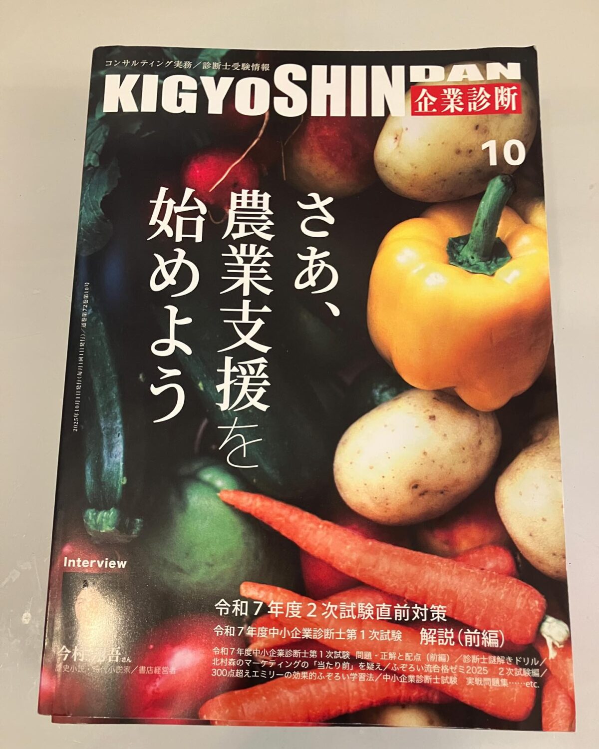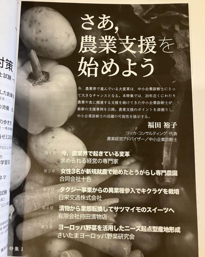 中小企業診断士の専門雑誌「企業診断」10月号 巻頭特集「さあ、農業支援をはじめよう」で、代表フクダが特集20ページ全てを執筆しました。